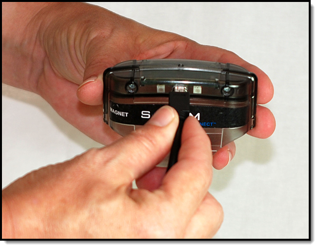- Place the magnet on the Direct Connect device where the word “Magnet” appears until the red light turns off.