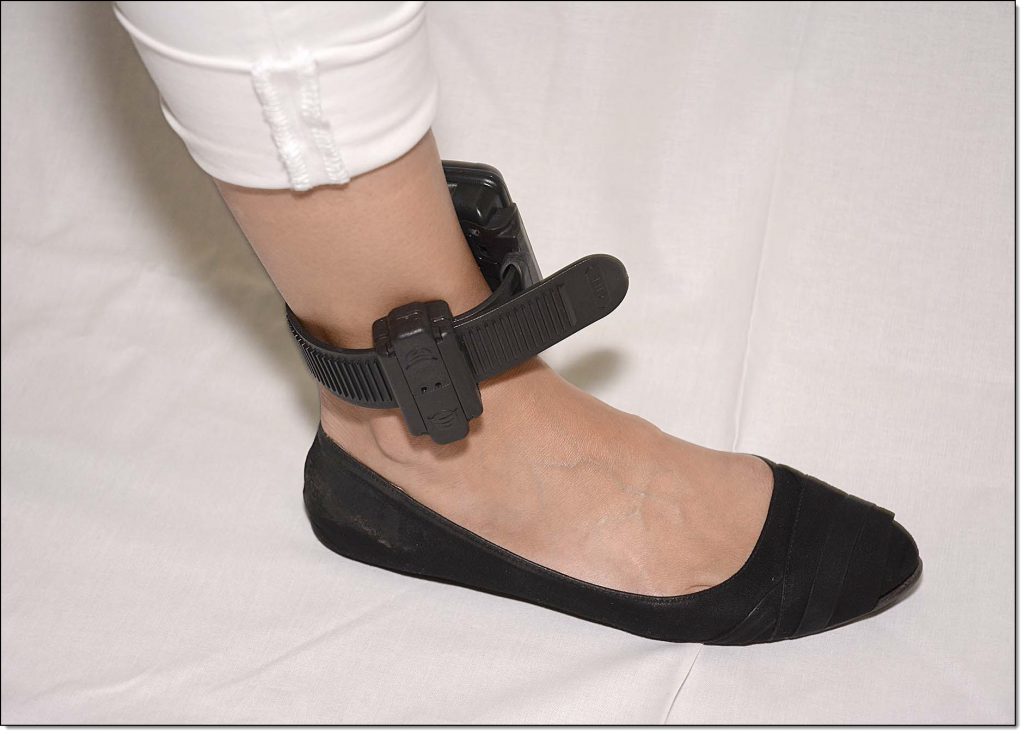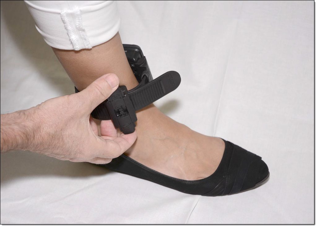 - Pull the strap back through the buckle, removing the bracelet from the client’s ankle.