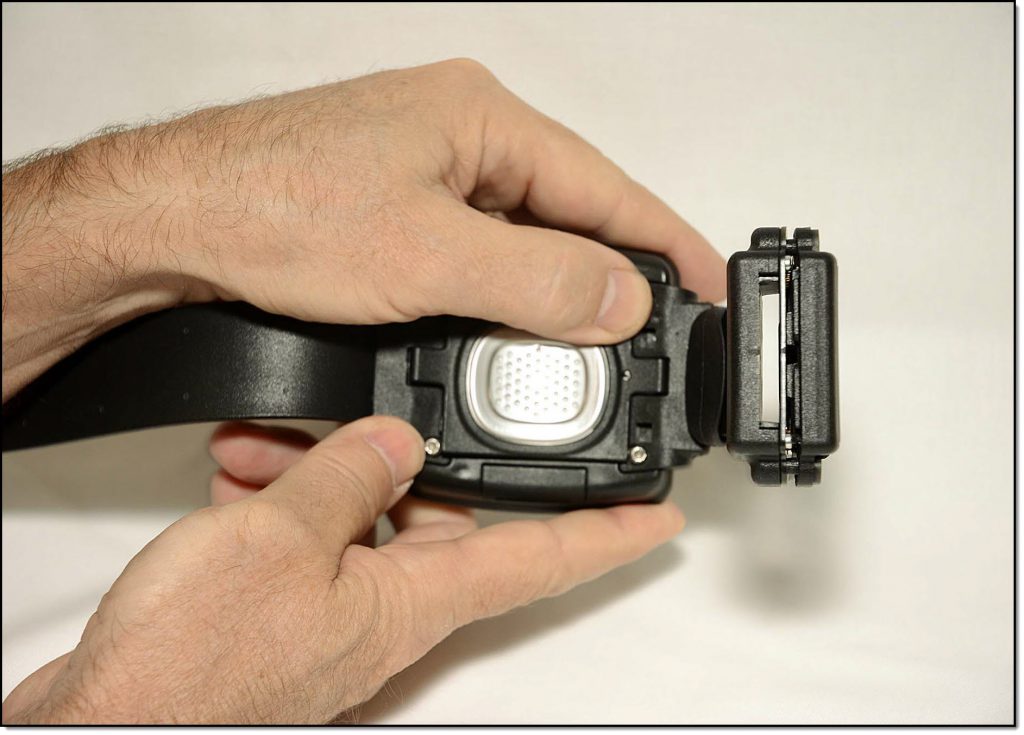To attach the Direct Connect device:- Align the Direct Connect device with the top of the bracelet.