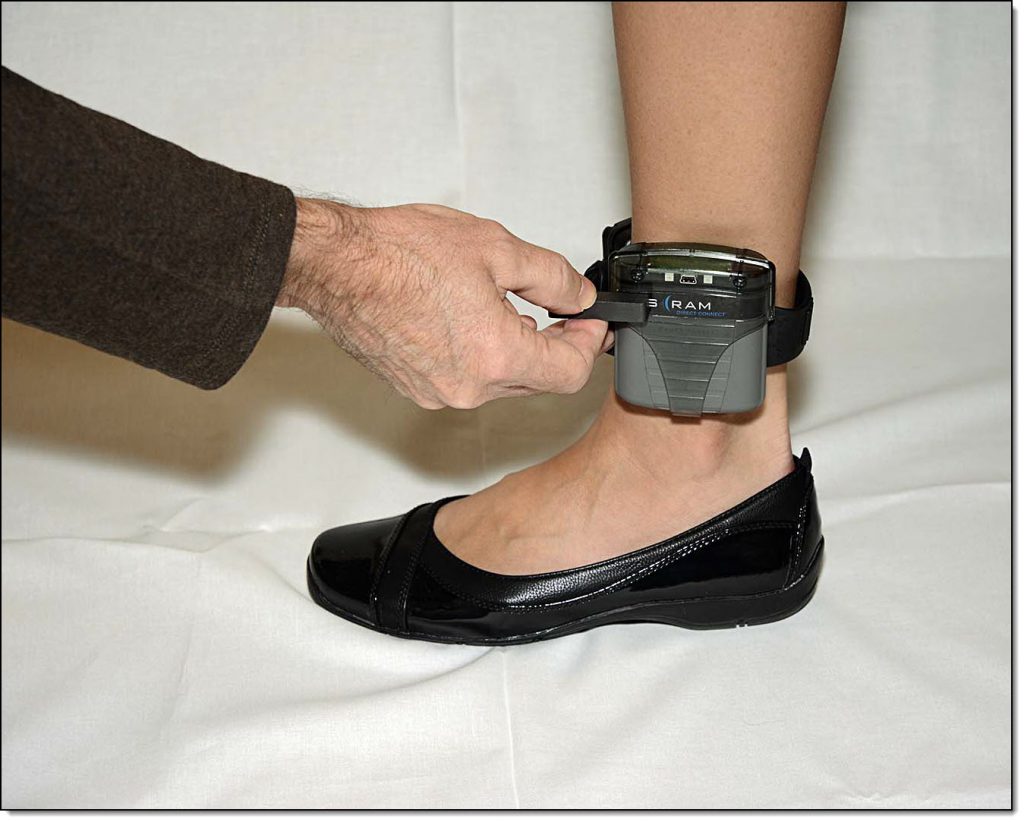- Place the bracelet no more than an index finger above the right or left ankle with the SERIAL NUMBER FACING UP.