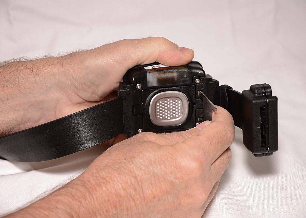 To remove the straps:- With faceplate removed, place the bracelet on a firm surface.