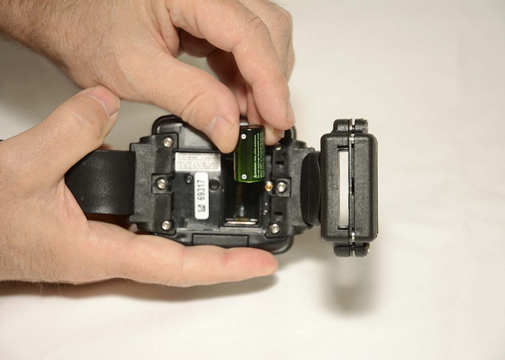 - Look closely for the outline of a battery at the bottom of the battery slot and insert the battery, starting with the positive side being pushed against the bottom side of the battery slot and pushing down on the negative (flat) side.