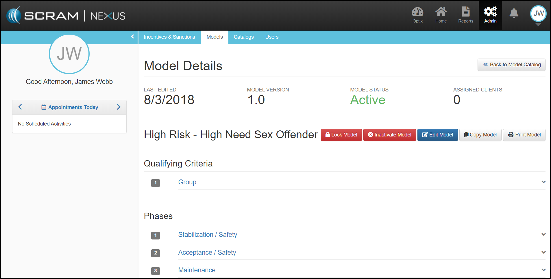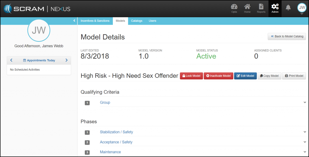• Inactivate Model: A Model can be Inactivated once there are no clients assigned to the Model.