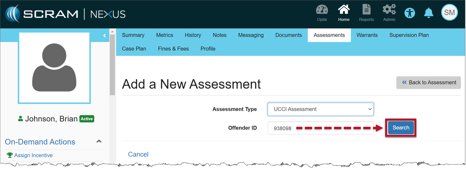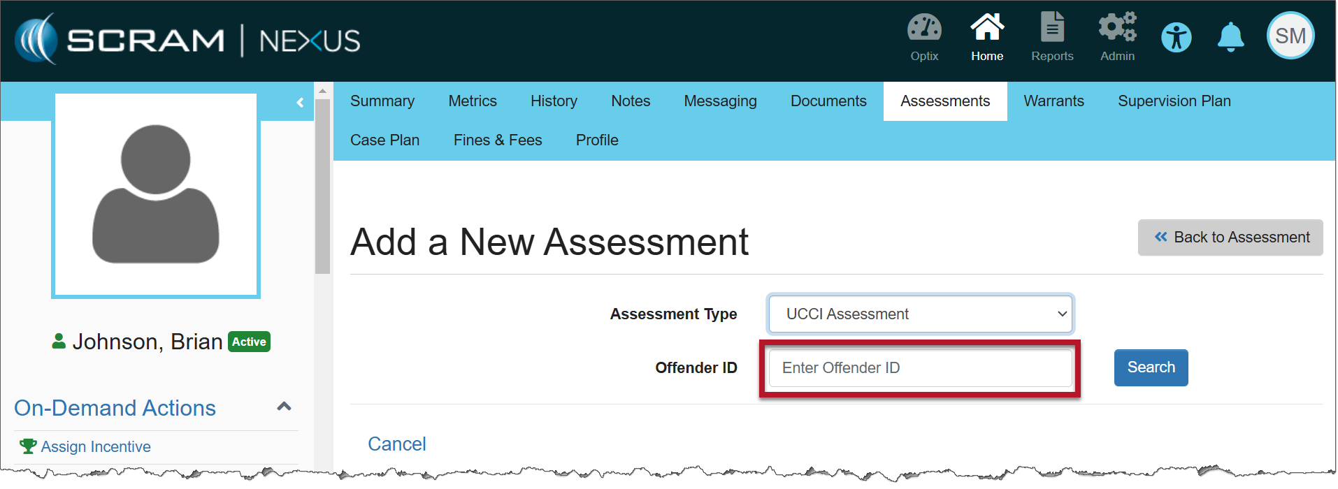 3. Enter the client’s UCCI Assessment Offender ID.