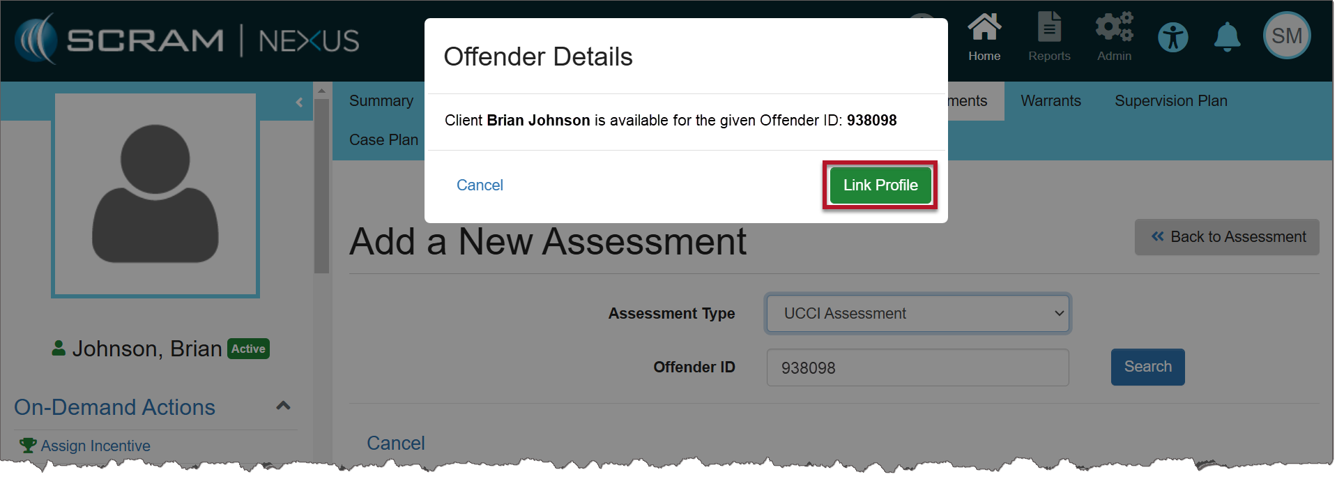 4. An Offender Details pop-up window indicates the client that will be linked to that UCCI Offender ID.