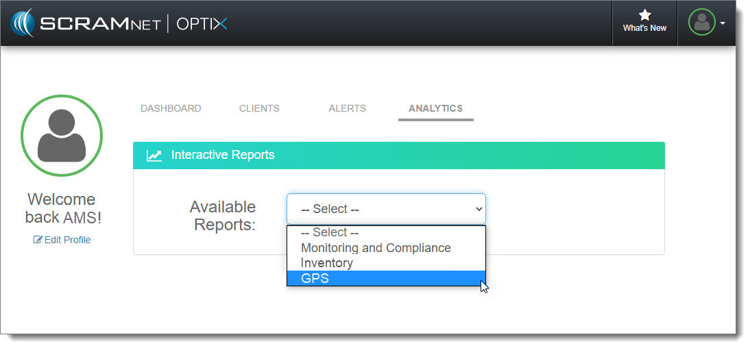 Next, select the GPS option in the Available Reports dropdown menu.