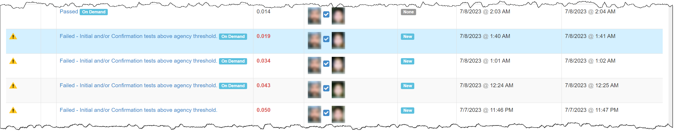 Example: Failed – Initial and Or Confirmation test above agency threshold Alert