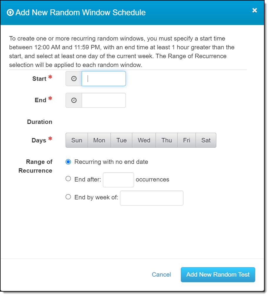 - Click on the Random button, select the End after ___ occurrences radio button, and enter the appropriate number of occurrences in the field.