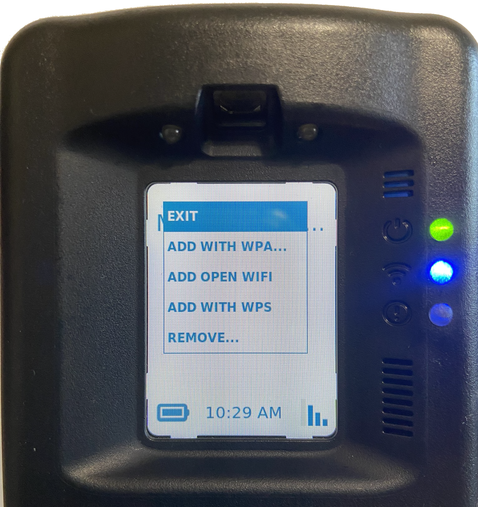 - Using the up/down buttons on the RB Pro device, highlight the “Add Open Wi-Fi” network you wish to connect to.