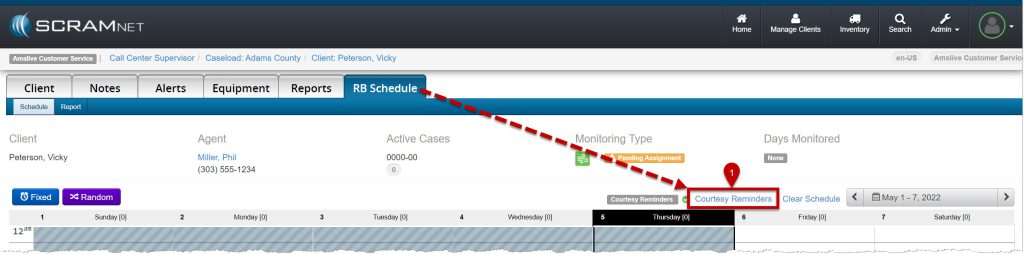 - Select the Courtesy Reminders hyperlink on the client’s RB Schedule page.