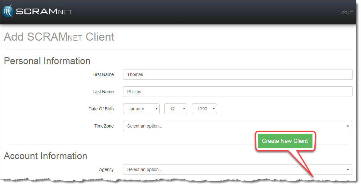 - Return to SCRAMNET – Accesses the Manage Clients page.