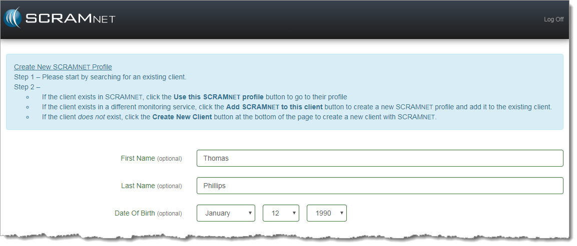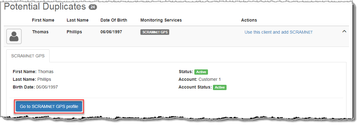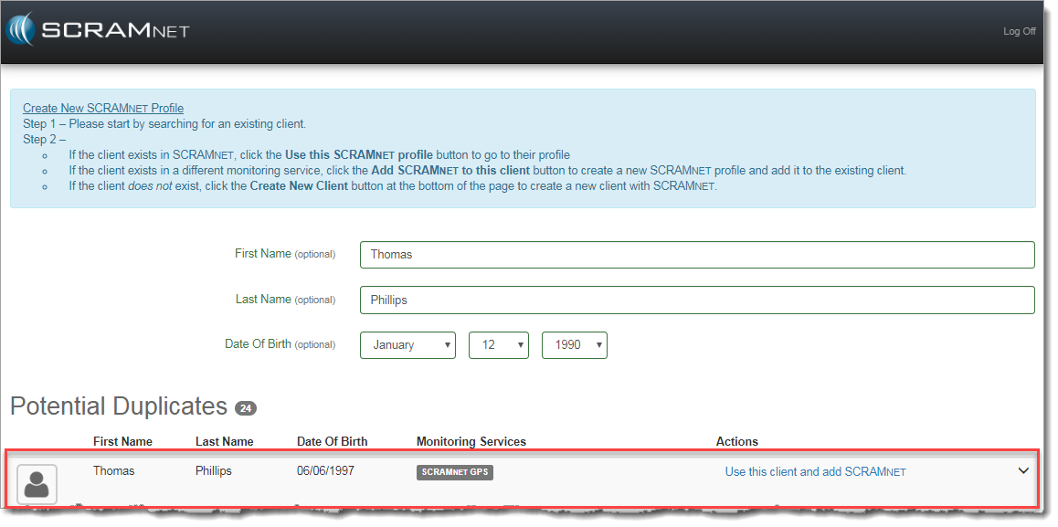 - If the details reveal that the client is NOT the same individual, repeat steps 1 through 3 then proceed to step 6 below to complete a SCRAMNET profile.