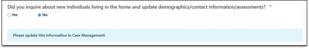 Note: At any time while recording the home visit, you can click the Notes button on the right border of the page to add a note.