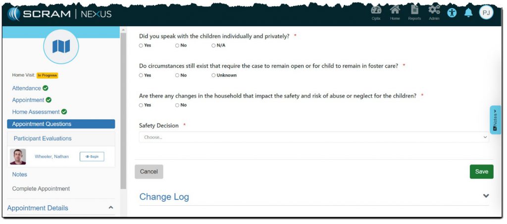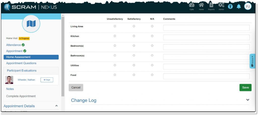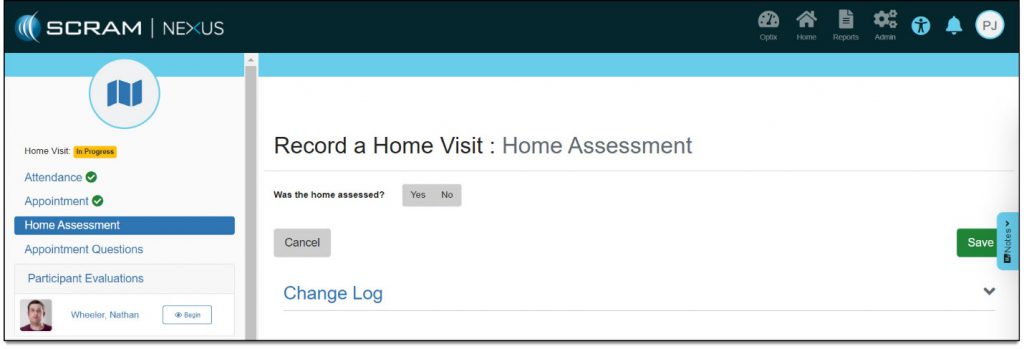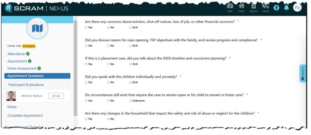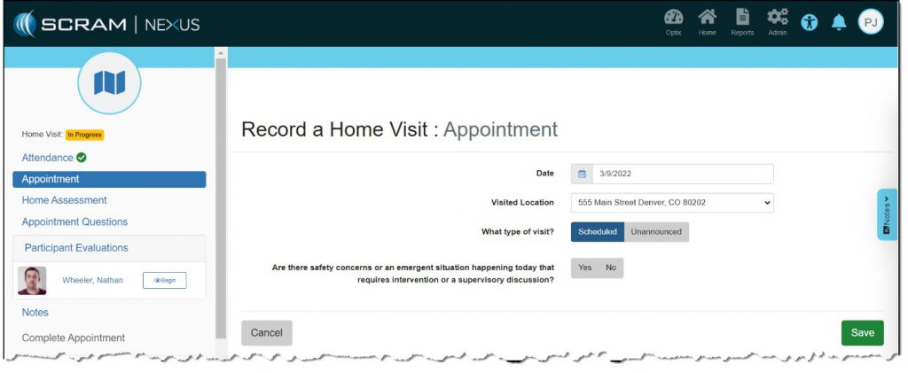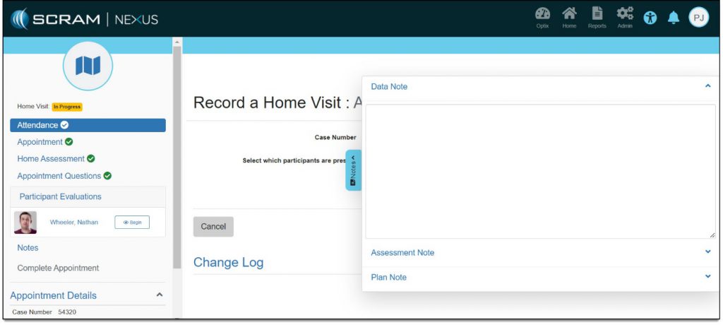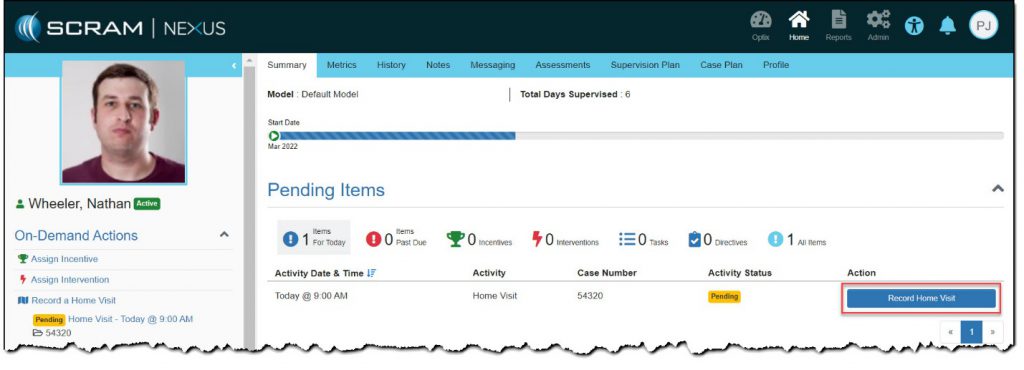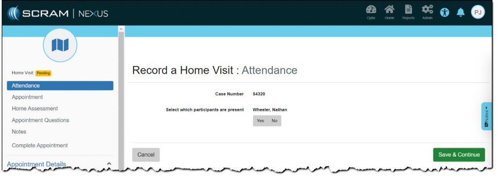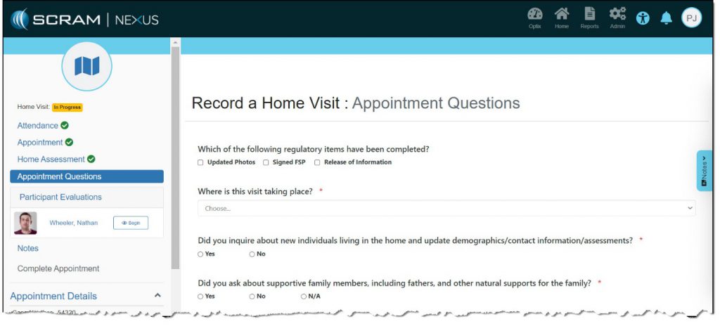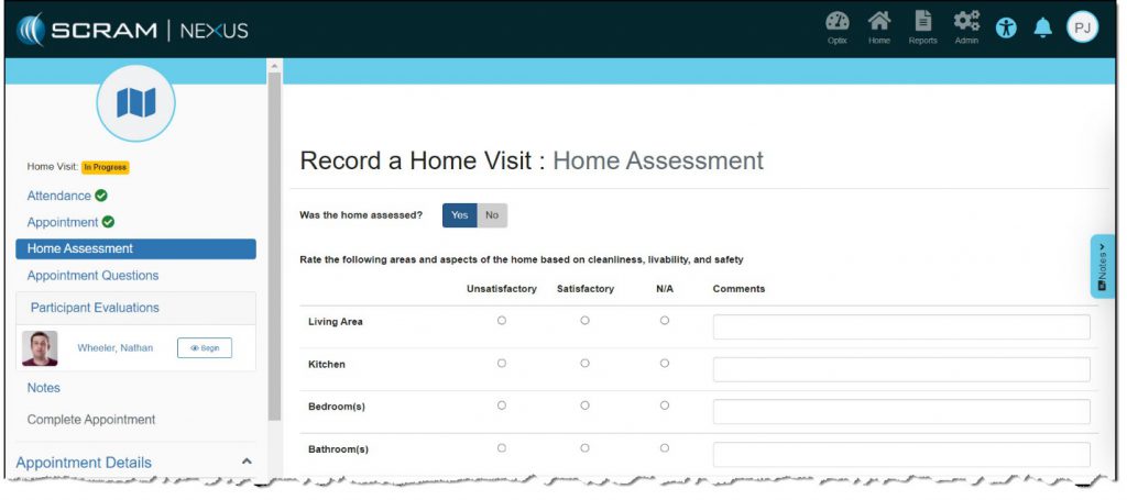 When you are conducting a home visit with a client, you can record that visit in SCRAM Nexus Family. To start: