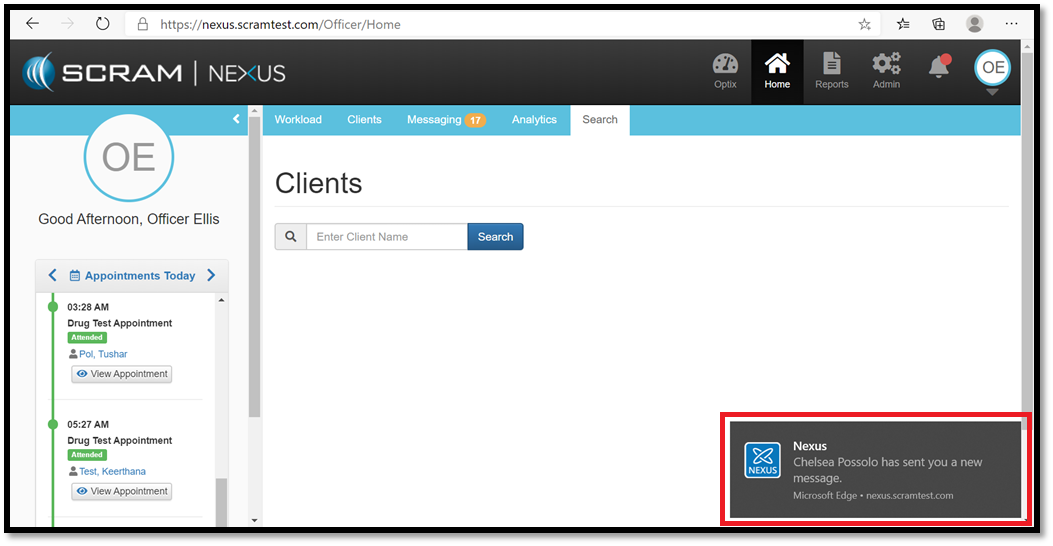 As a caseworker, you can opt to receive browser notifications from SCRAM Nexus Family. Allowing these notifications enables you to be notified when you have a new TouchPoint messages, even if you do not have SCRAM Nexus Family visible on a screen.