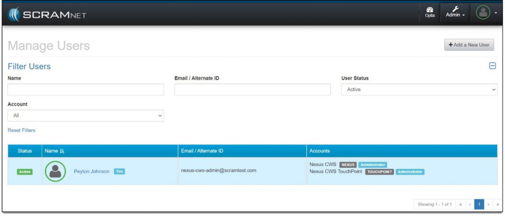 - Administrator – Can view all areas of SCRAM Nexus Family and can create, edit, and/or delete data in the system.