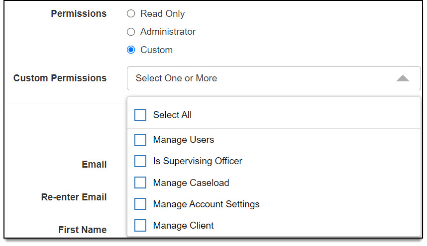 - Is Supervising Officer – Can view and edit client data for all direct reports.