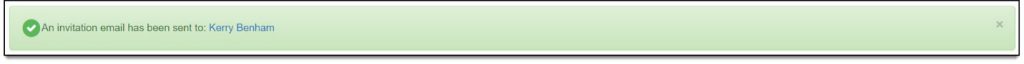 A message appears at the top of the page indicating that an email has been sent to the new user to complete the process.