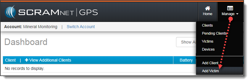 Use this procedure to add and set up a victim in SCRAMNET® GPS.