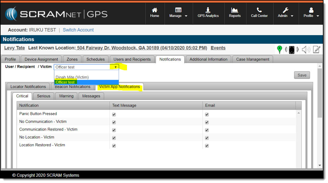 The officer should manually configure each victim’s notifications. Relying on the account settings may result in the victim getting notifications that are irrelevant.