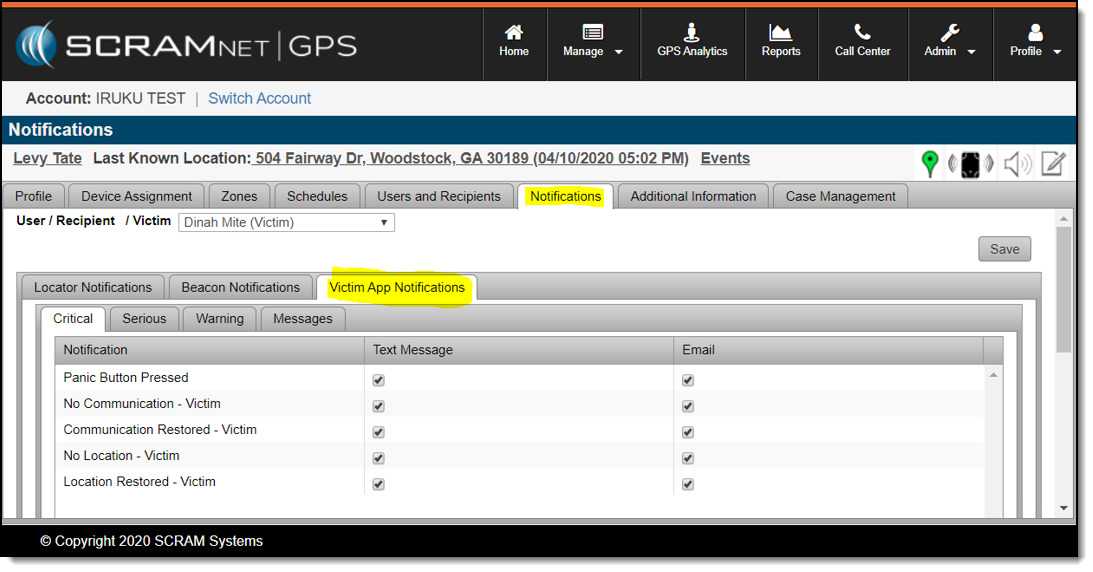 Victims and other recipients can be notified on events and alerts from the SCRAM Ally™ app.