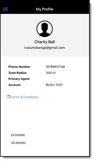 • My location button – Displays the smartphone’s current location with address and Lat/Long coordinates included.