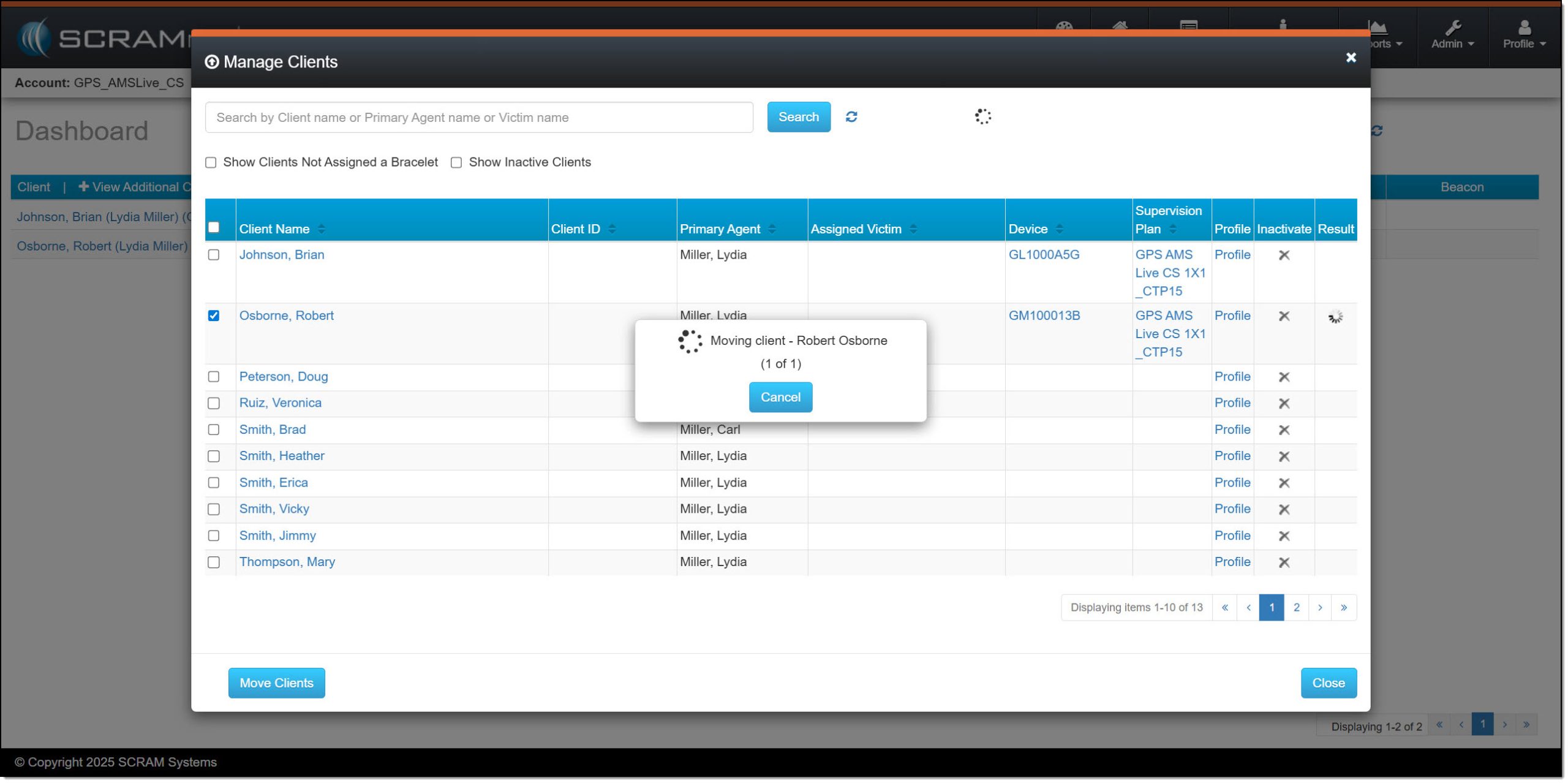 It’s essential to note that while clients are being transferred from one caseload to another, their location monitoring remains unaffected. All client data from the SCRAM GPS bracelet is still being processed. Additionally, the entire client record is moved and accessed from the new caseload.