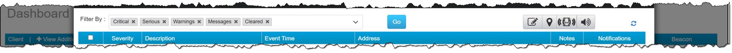 In addition to the Dashboard, you may view a record of client events, add a note to the event, or clear an event by selecting the Events Icon on either the client’s quick-access dropdown menu or from the client’s Profile Summary pop-up window.