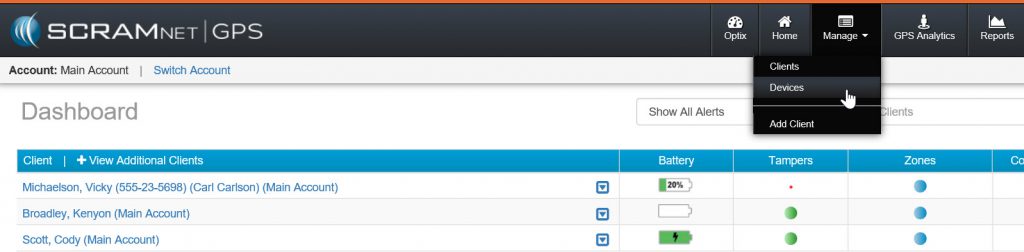 - On the Manage dropdown menu, select the Devices option. This will display the available devices for assignment.