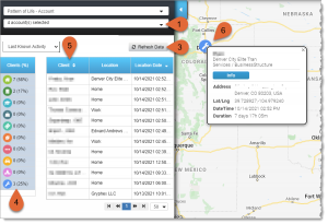 Pattern of Life includes an “Account” view, which displays on the map the Last Known Location of all clients in any of the sub-accounts to which the agent or officer has access.