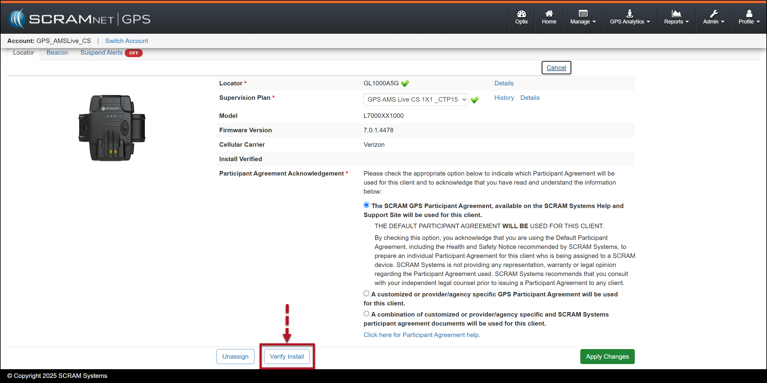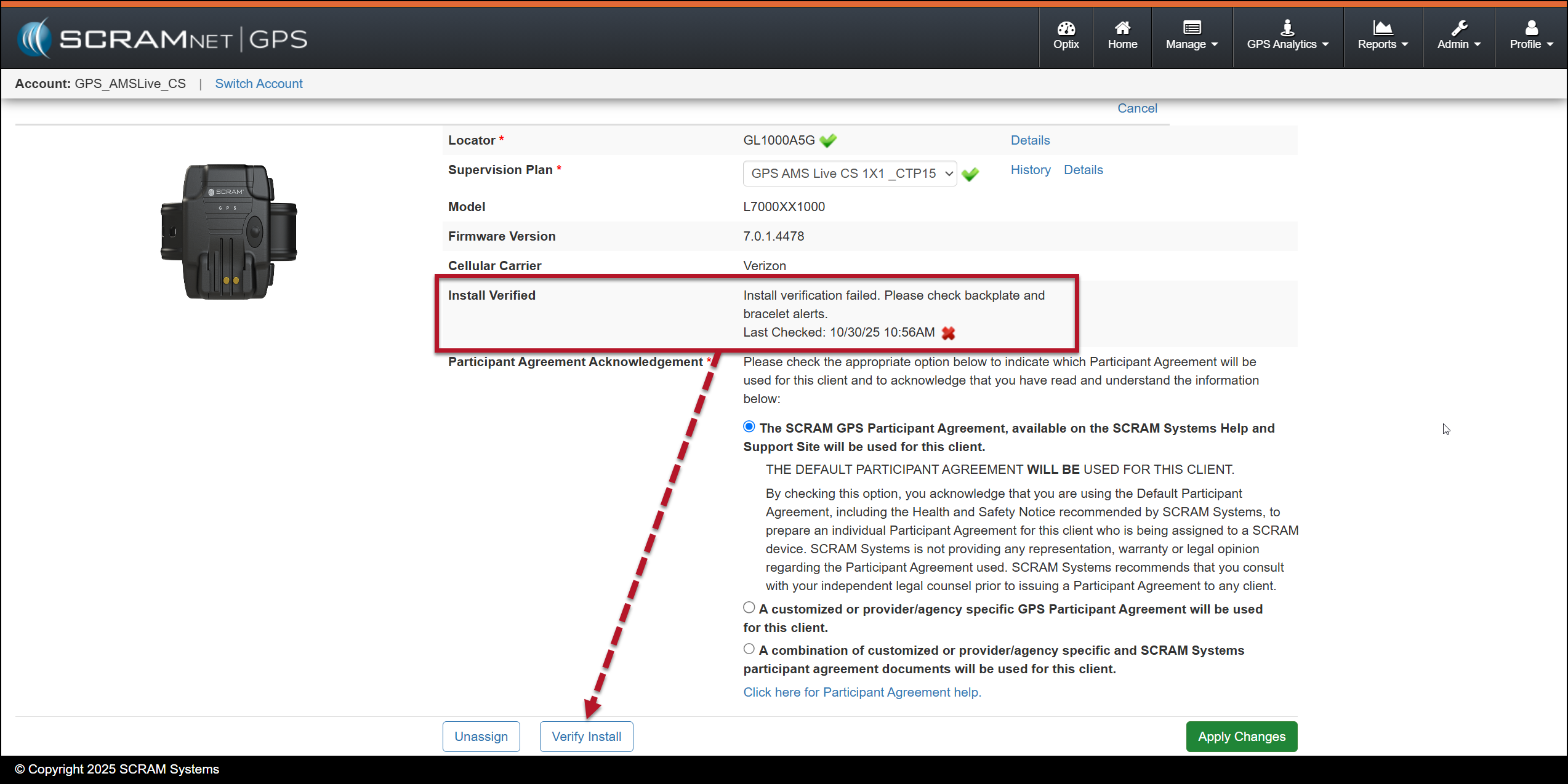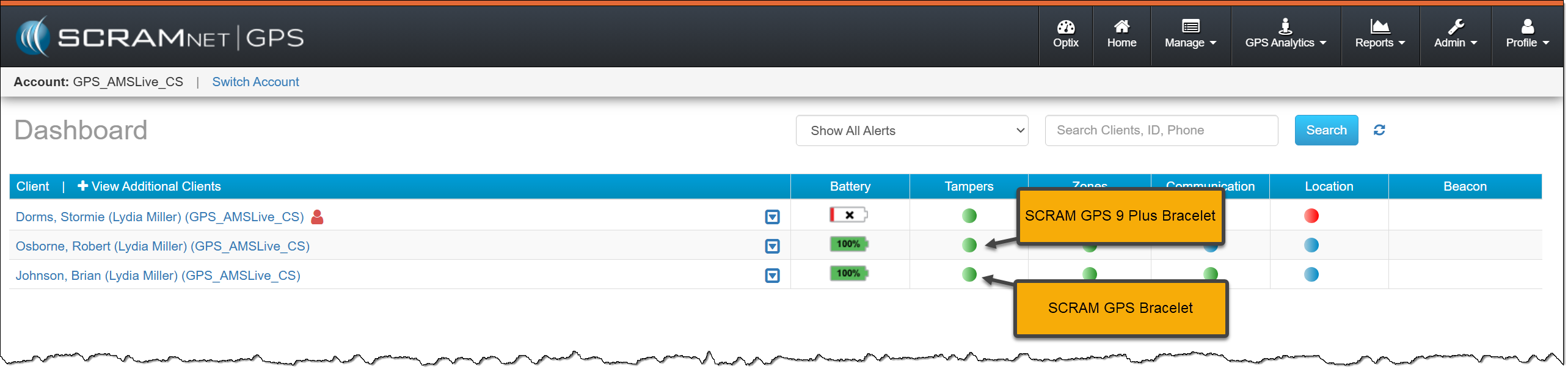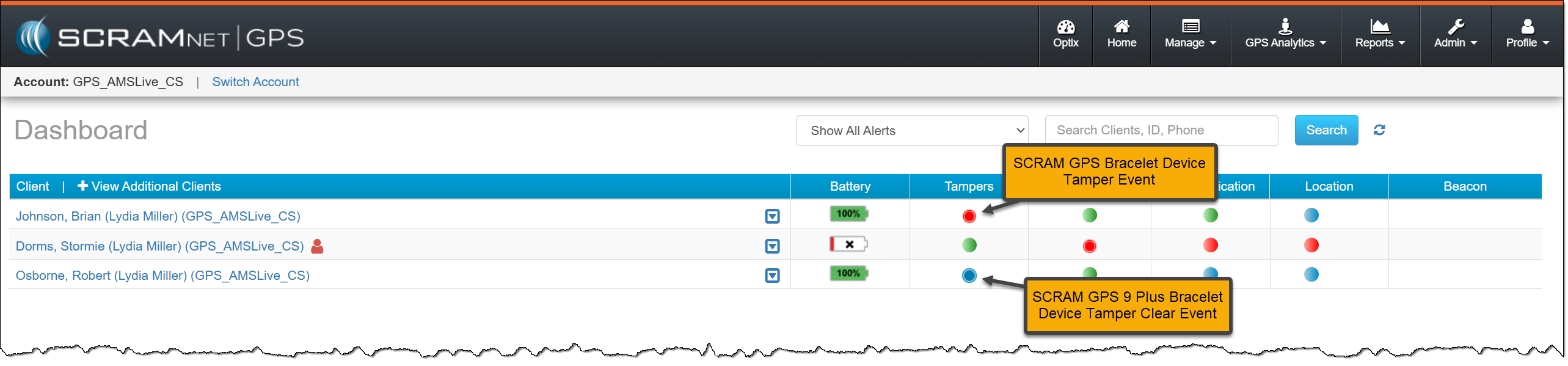 1. Next, navigate to the SCRAMNET GPS Dashboard and clear any device tamper alerts triggered during the client’s installation.