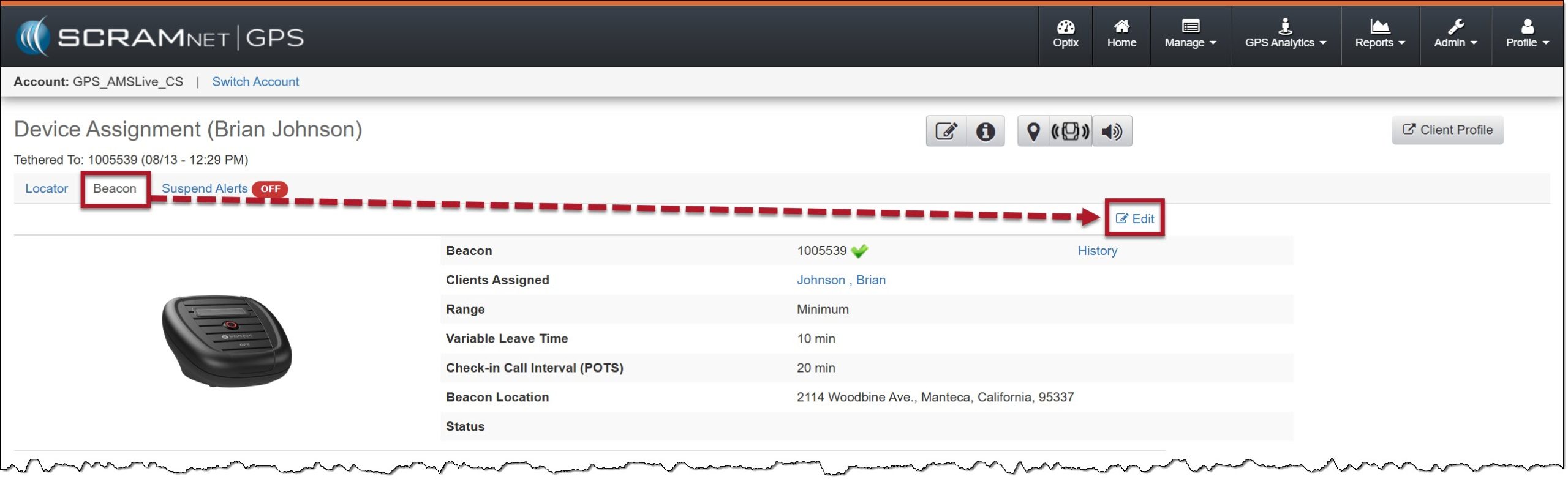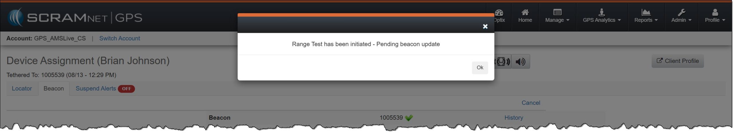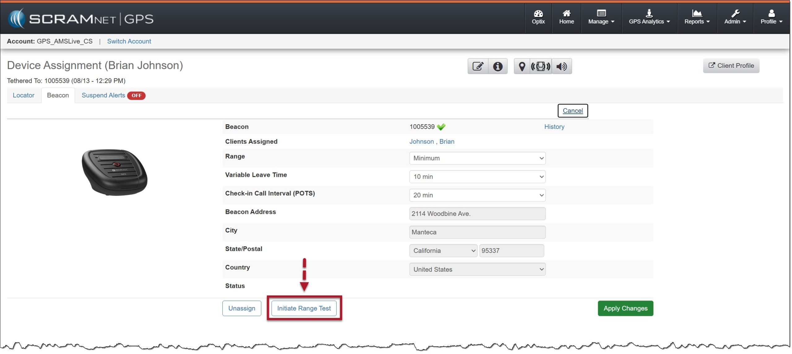 - The SCRAM GPS Bracelet and beacon must be in an assigned status