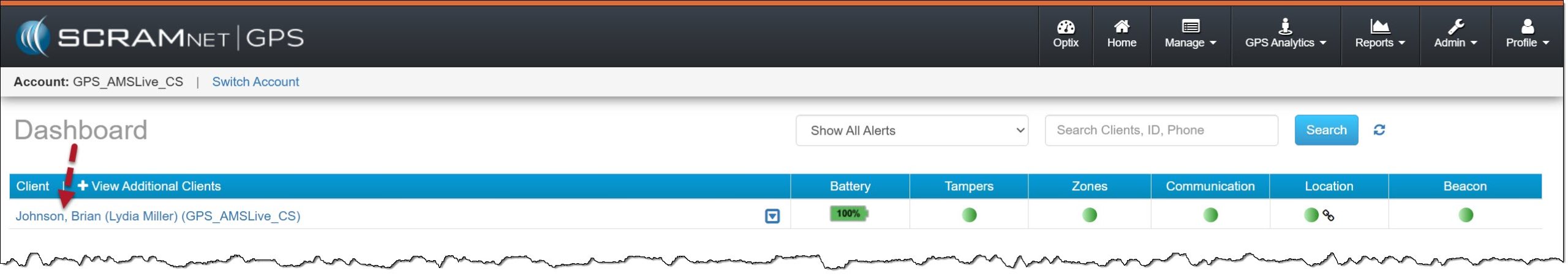 - Select the client’s name hyperlink on the Dashboard.