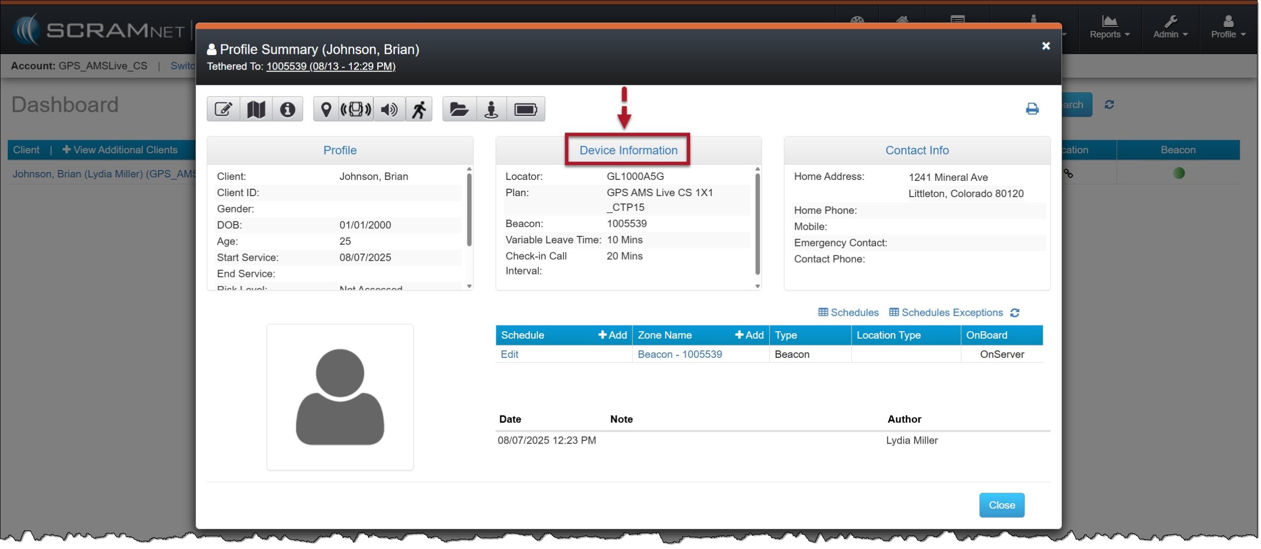 - Or instruct the client not to linger in the “dead zone” areas for extended periods. As a best practice, document any “dead zones” and client instructions on the client’s Notes page in SCRAMNET GPS.