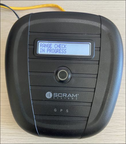 A SCRAM Beacon range test is performed at the client’s home with the supervising authority present. A range test identifies areas where the radio frequency (RF) between the SCRAM GPS bracelet and the beacon is interrupted. This interruption may occur due to walls, building materials, or other electronics, for example. Once these areas are identified, the range selected in SCRAMNET GPS may be updated, the beacon may be moved to a new location, or the client may be instructed not to linger in these areas for extended periods.