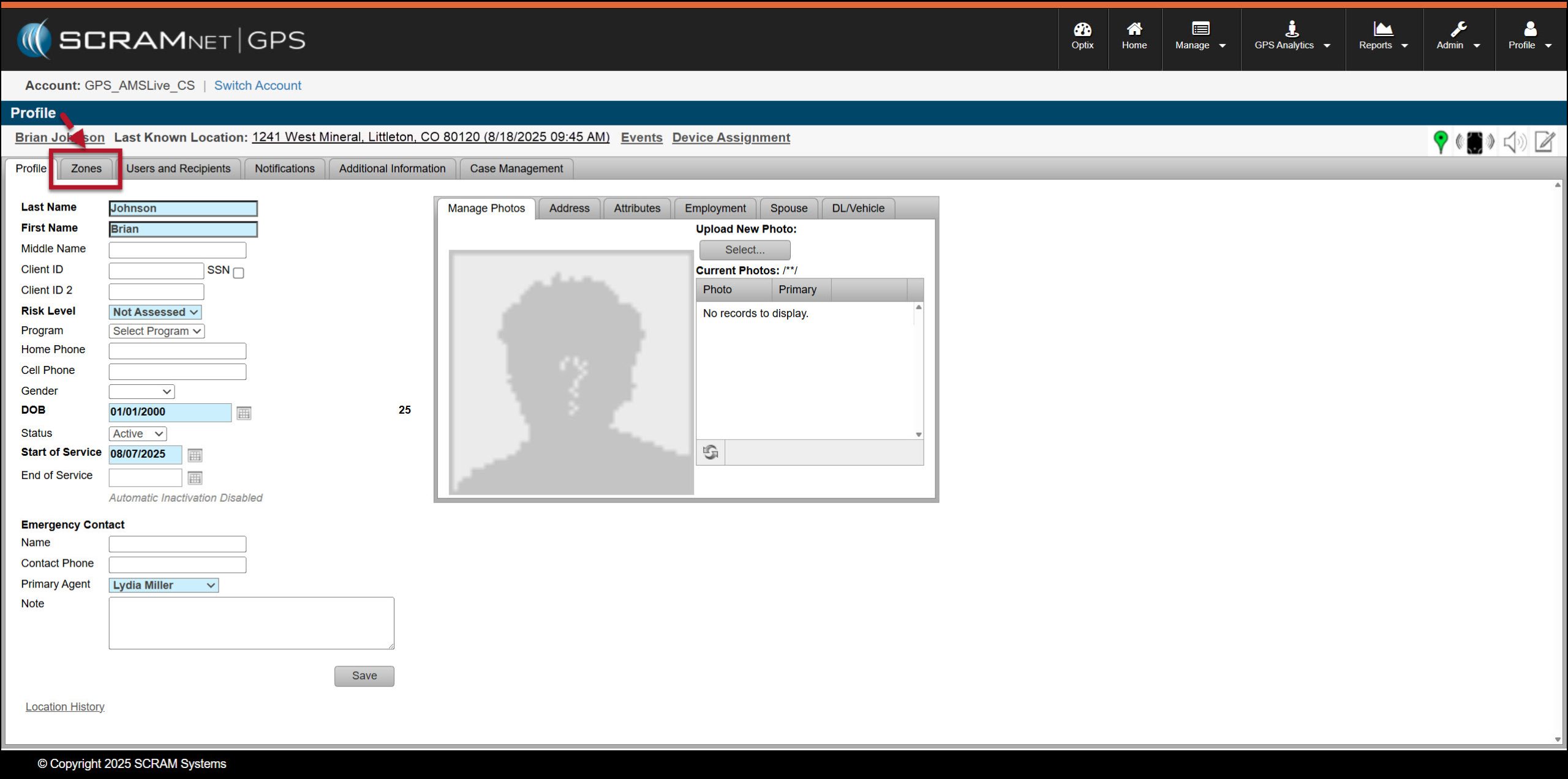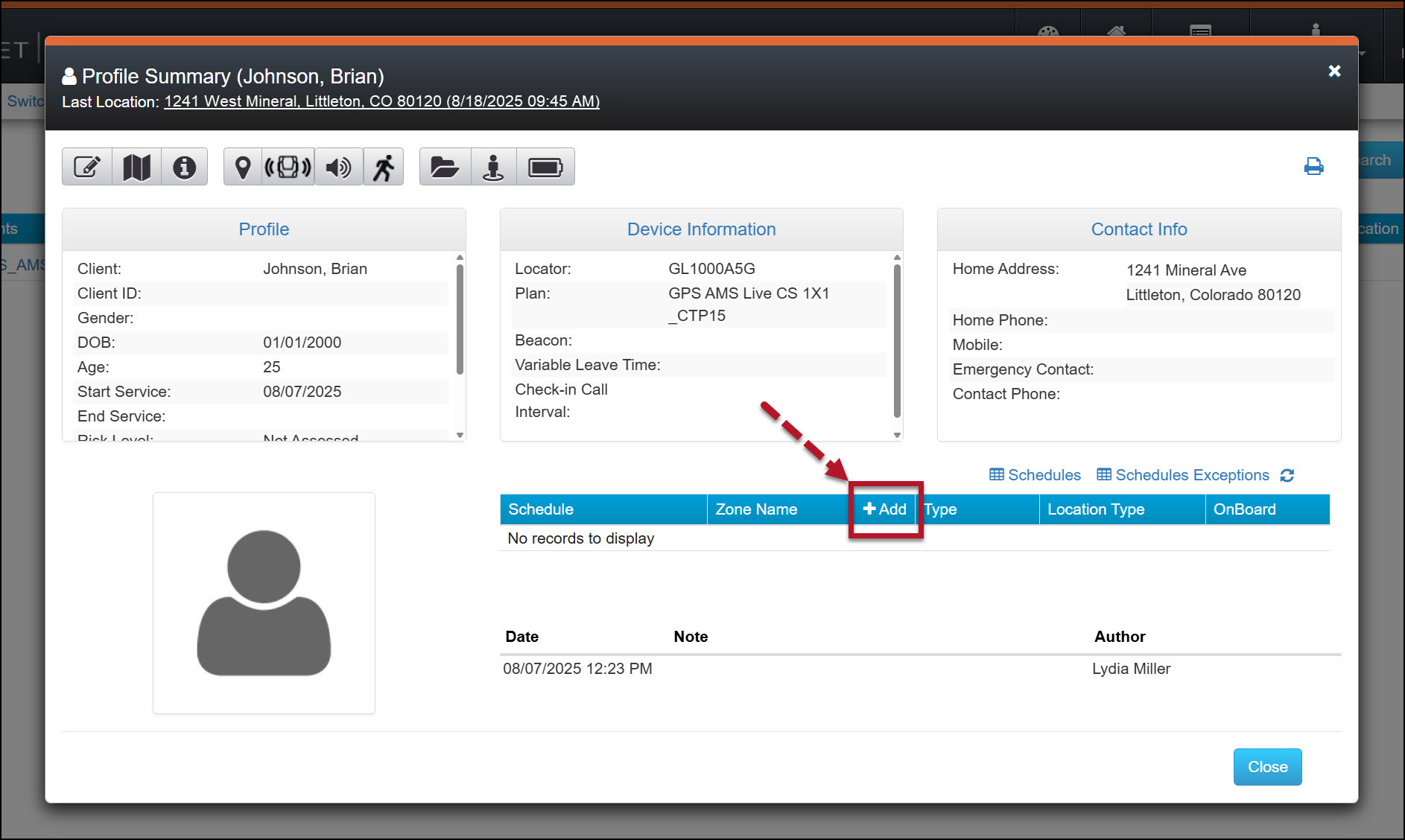Once the client’s profile has been created in SCRAMNET GPS, and in most cases, after the SCRAM GPS Bracelet is successfully assigned and installed on the client’s leg, their location monitoring begins. Depending on the client’s monitoring requirements, there may be locations or “zones” the client must remain in or out of while on the program. In addition to zones, the client may have a timeframe or “schedule” they must adhere to for their monitoring requirements. In this section, we will focus on creating zones for client monitoring. After adding a zone to the client’s monitoring, a schedule may be applied to it.