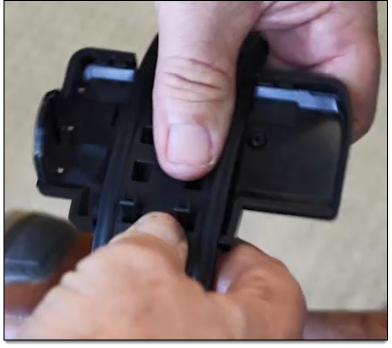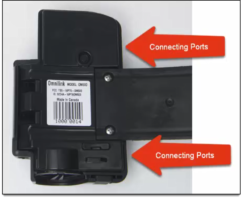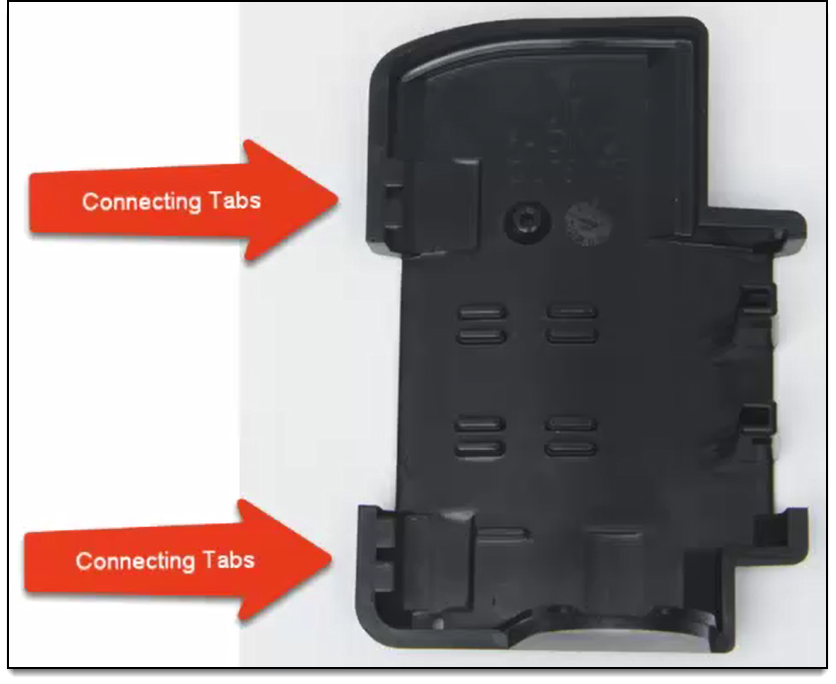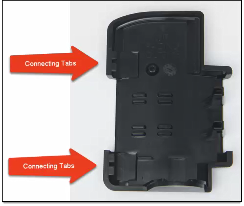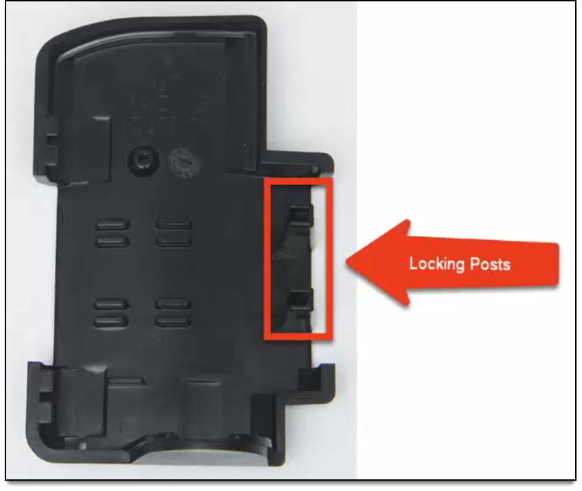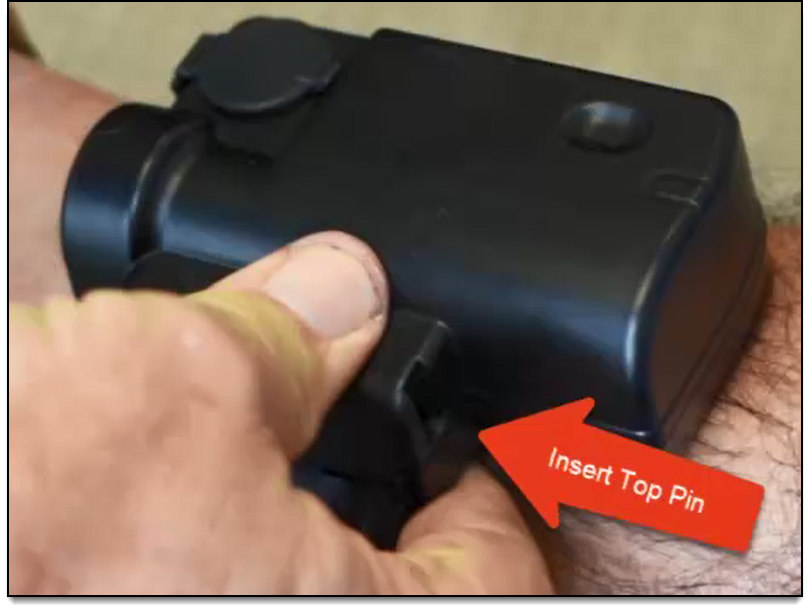 Note: The top locking pin has a larger head and will only fit into the device in one direction. You may need to squeeze the device and back plate together for the top pin to drop into place.