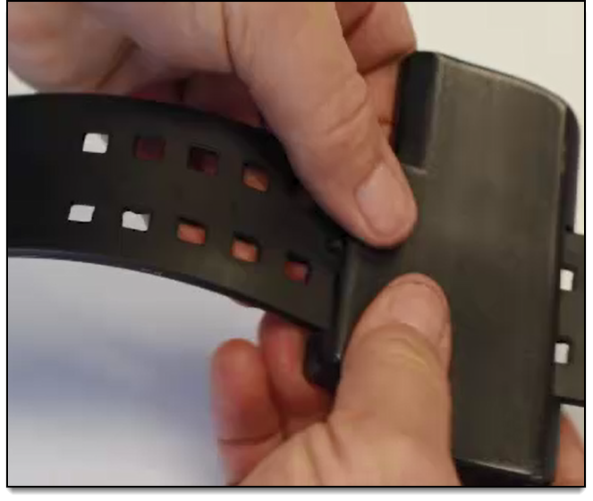 - Insert the strap through the locking posts on the back plate at the desired position.