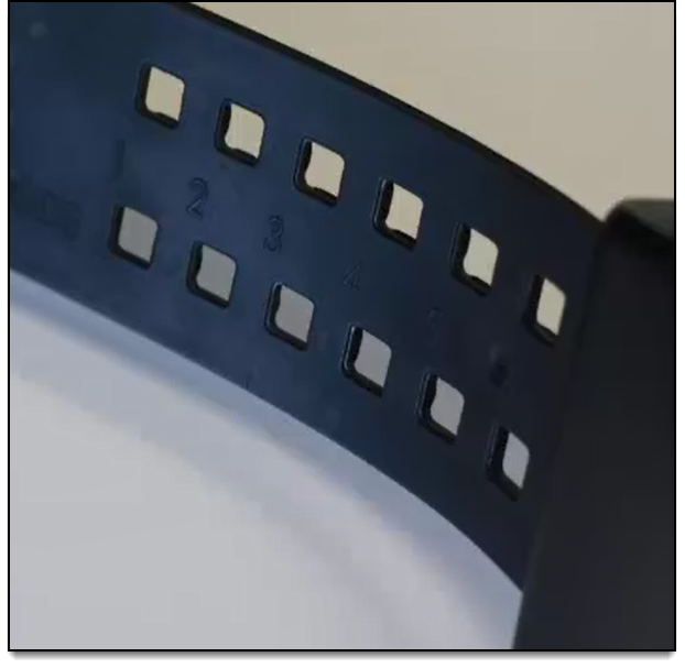 Located on the back plate. Used to properly size the strap and attach the back plate to the strap.