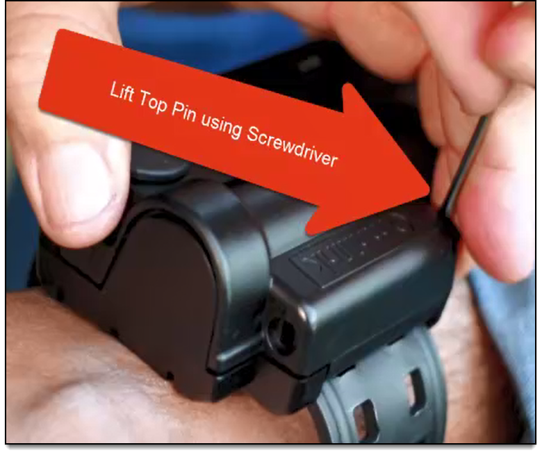 - If the bottom pin is stuck, use the supplied screwdriver to push the pin out of the device.