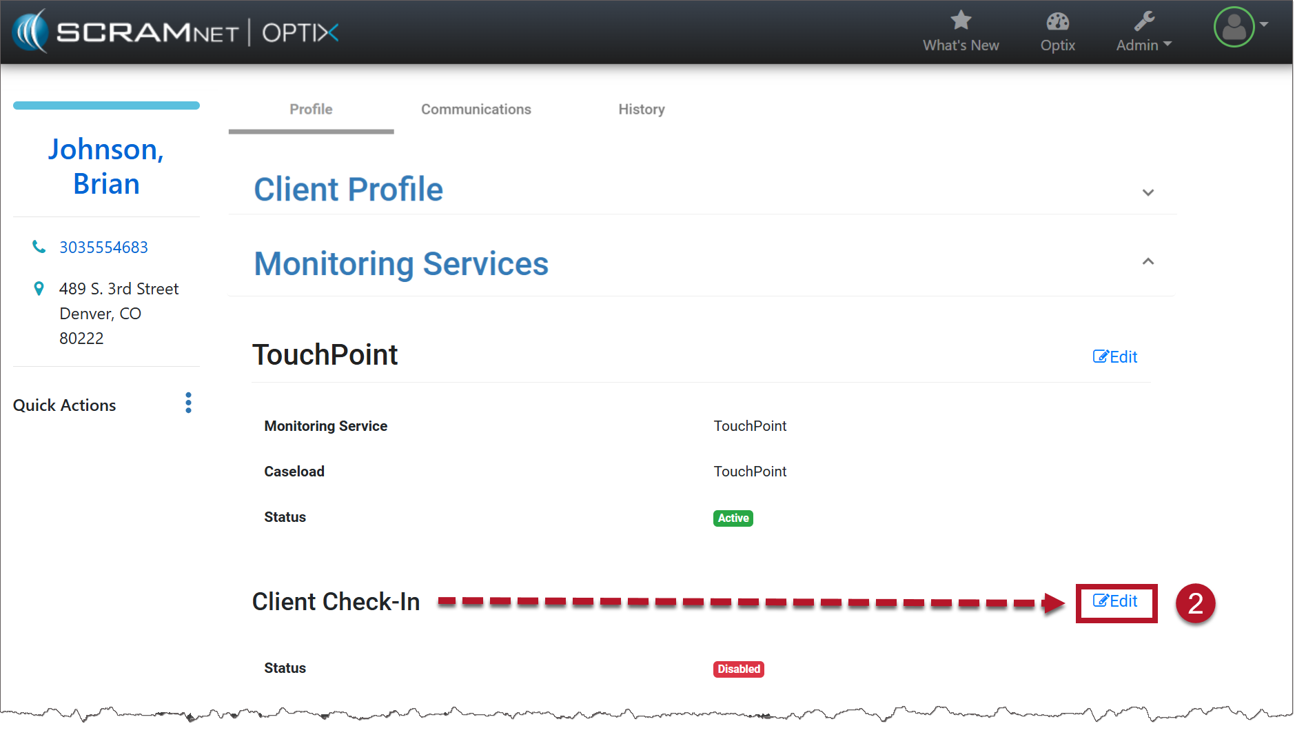 If your client is already an active TouchPoint participant, select their name from the list. - Locate the Edit link in the Client Check-In section.