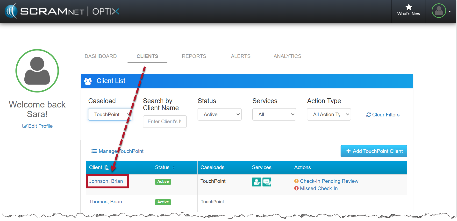 Start by navigating to the Clients tab in Optix and select the client’s name from the list.