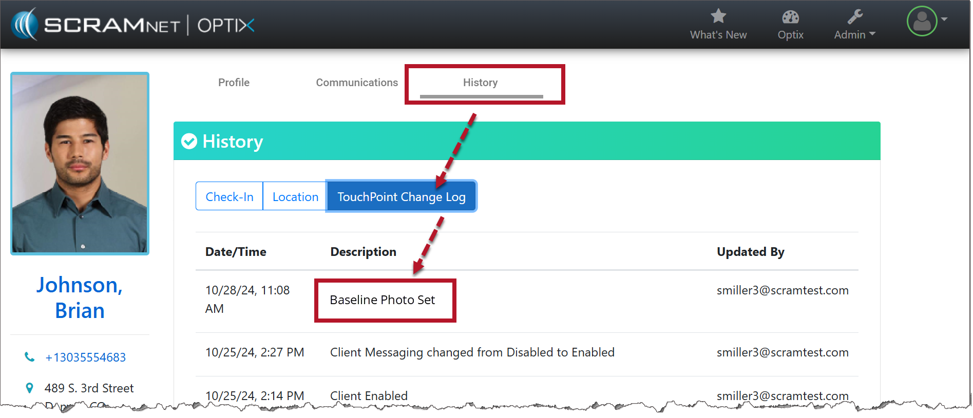 On the client’s Check-In History page, that check-in’s Facial Recognition column will reflect a status of Baseline Photo Set.