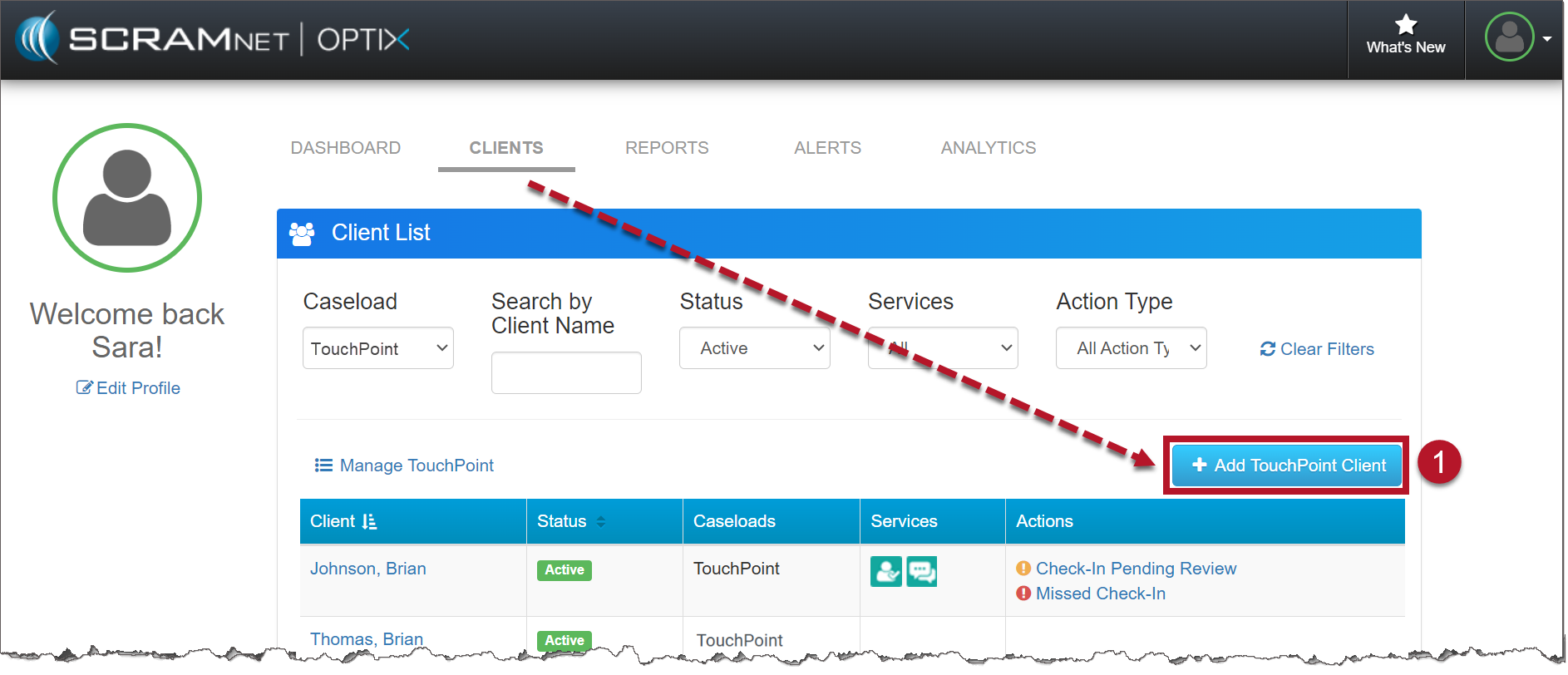 - If your client is already an active TouchPoint participant, select their name from the list on the Clients tab in Optix.