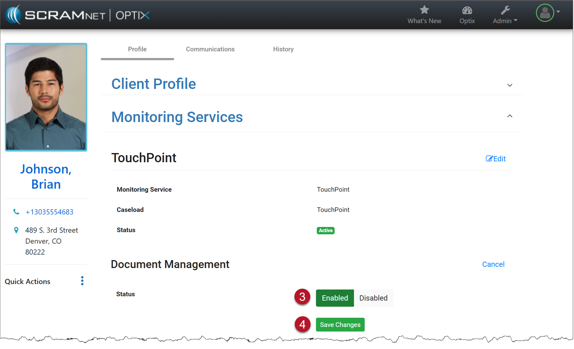 To disable the Document Management service for the client, select the Edit link and toggle the button from Enabled to Disabled.