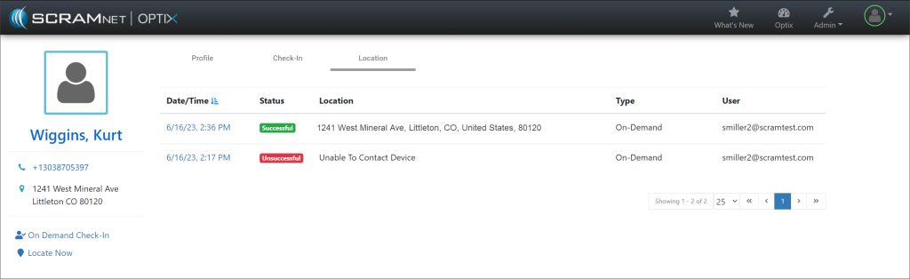 The Locate Now feature is an on-demand single location point that will display the current location of the client’s smartphone.