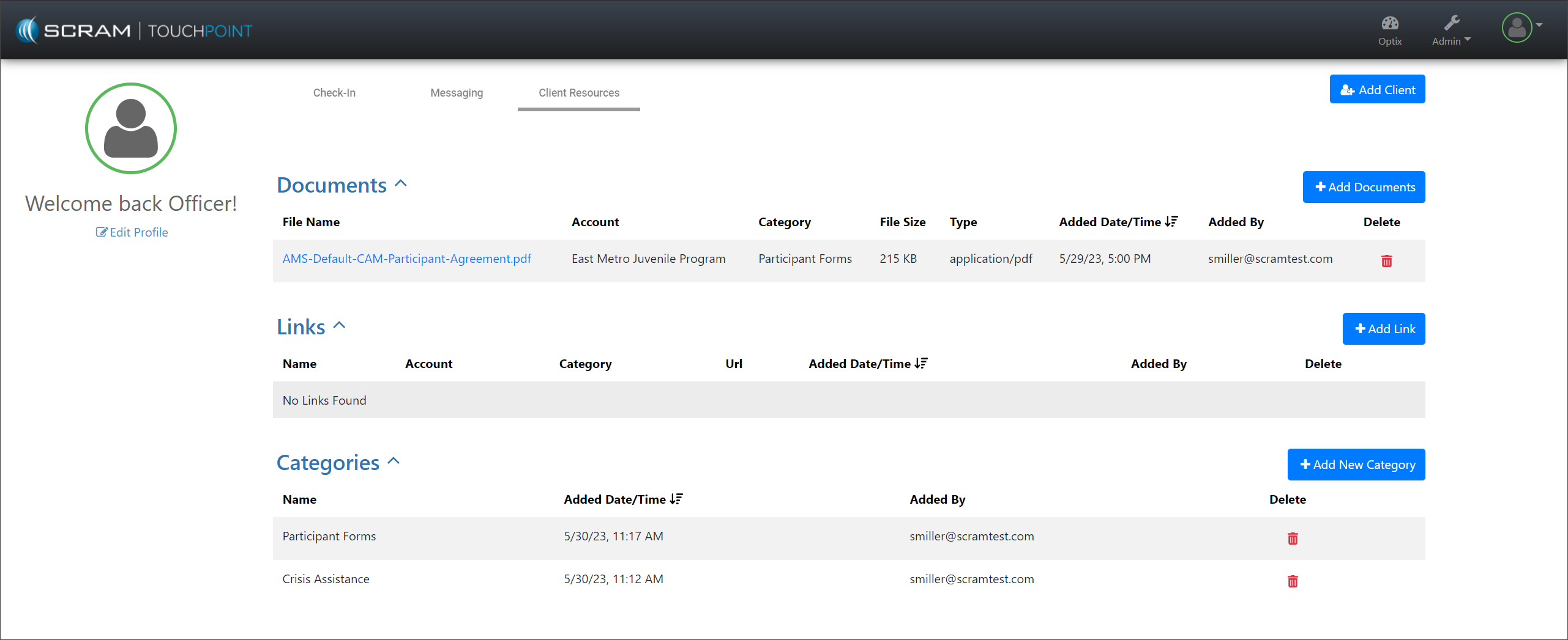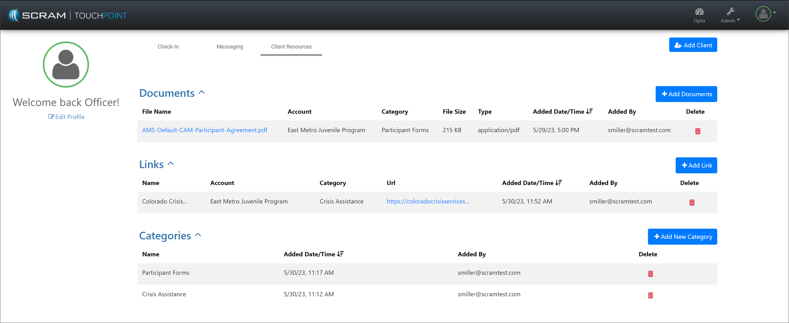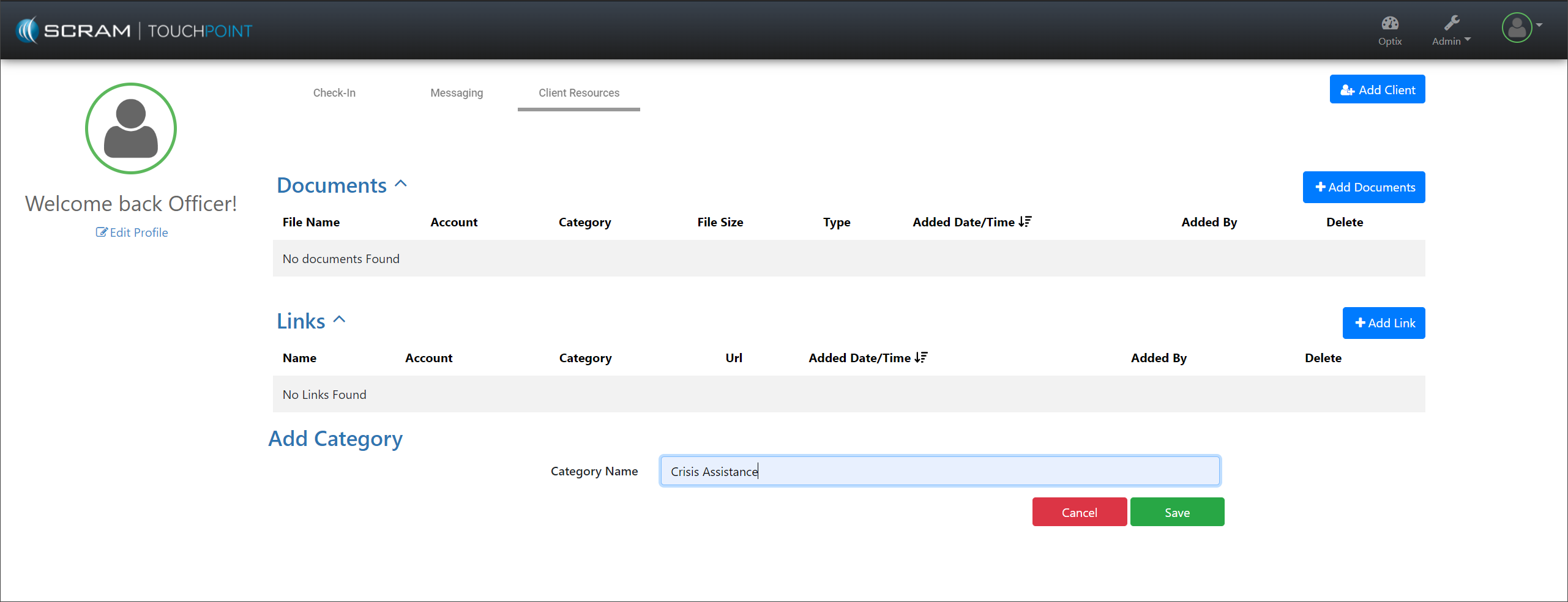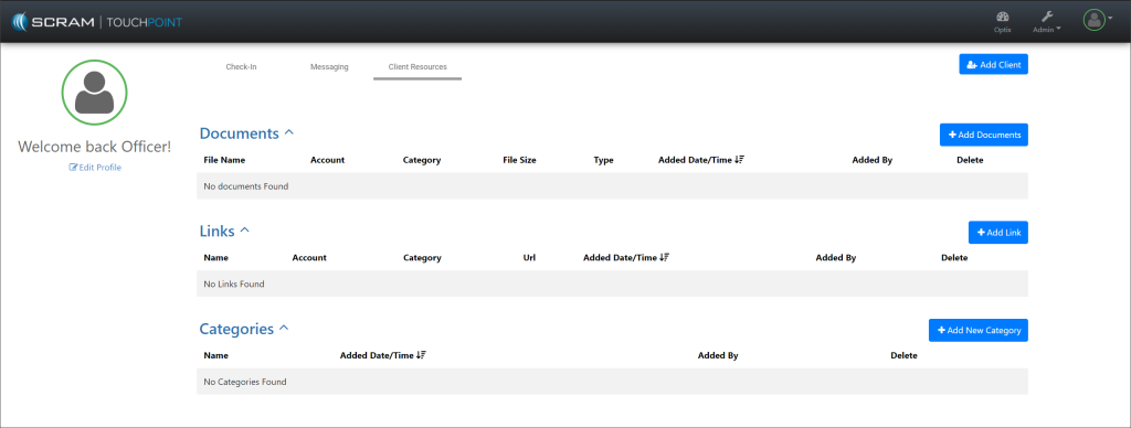 The Client Resources section allows you to provide your clients with documents and other online resources within their TouchPoint app.