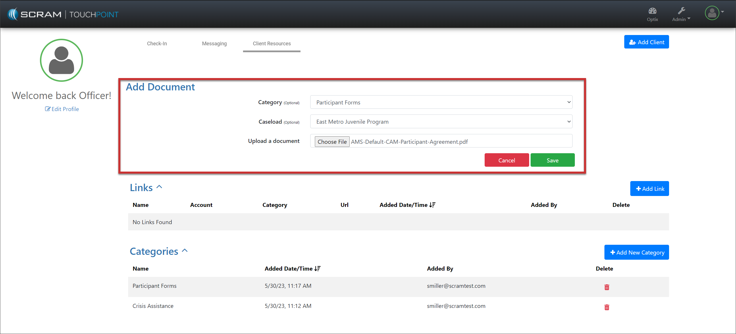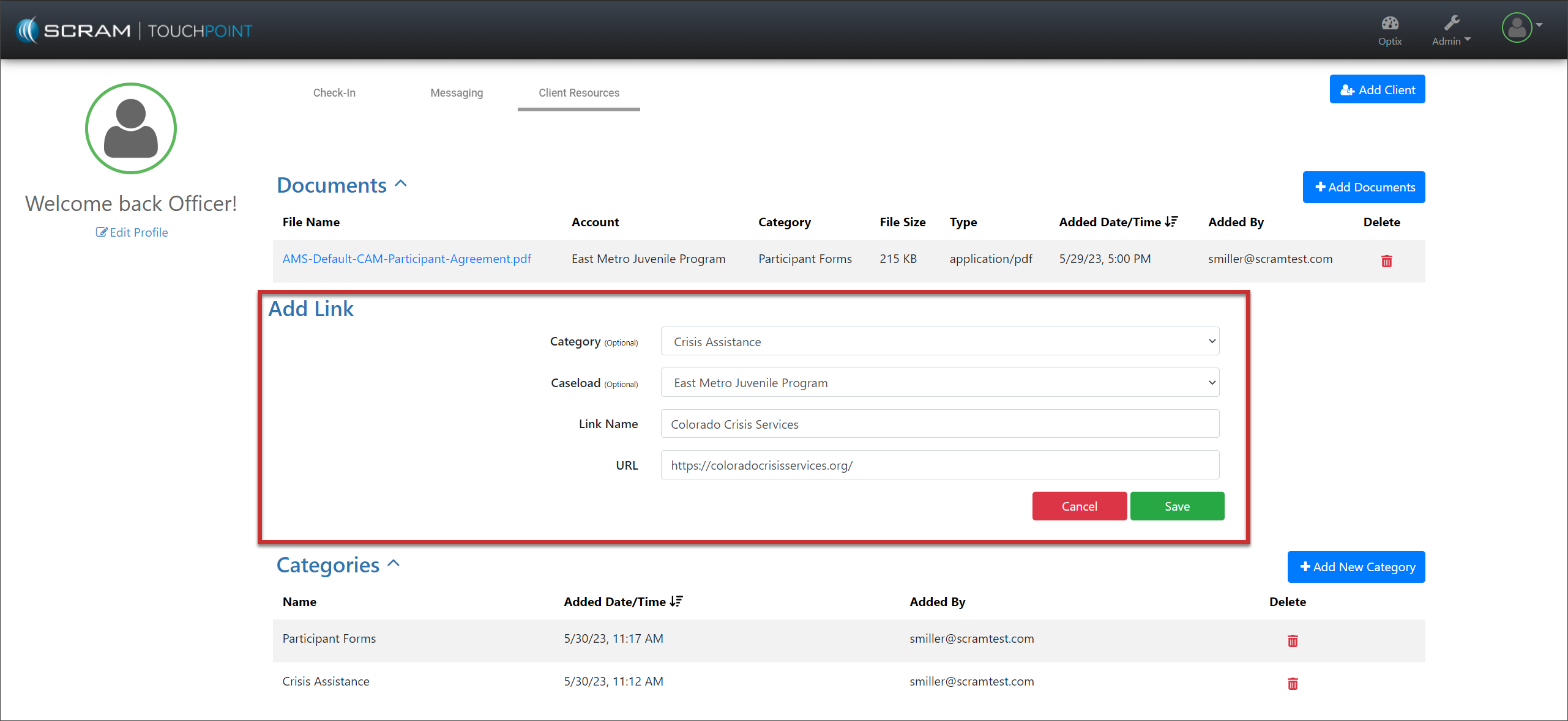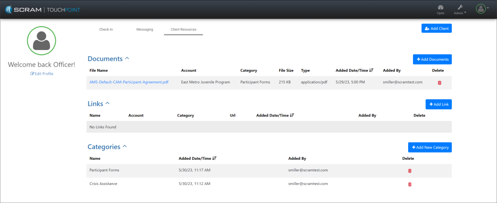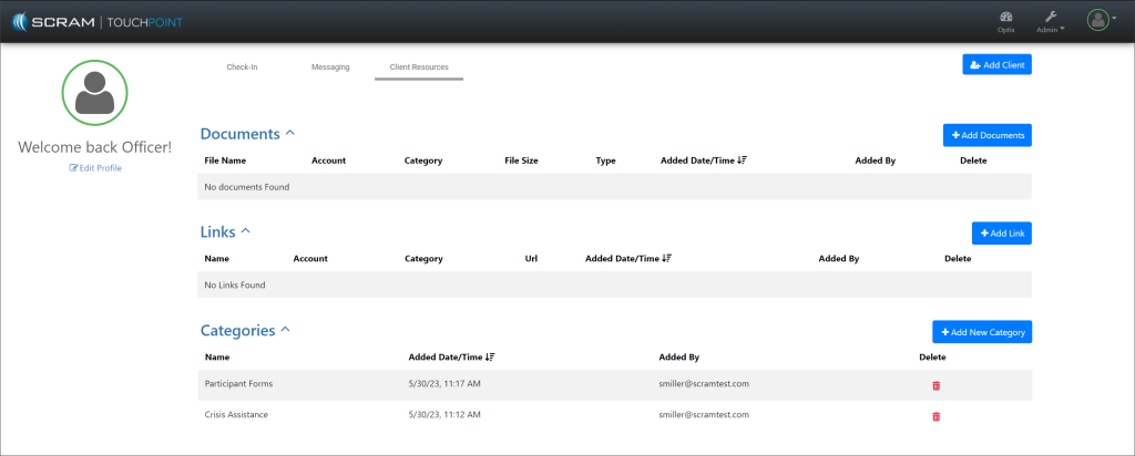The Client Resources section allows you to provide your clients with documents and other online resources within their TouchPoint app.