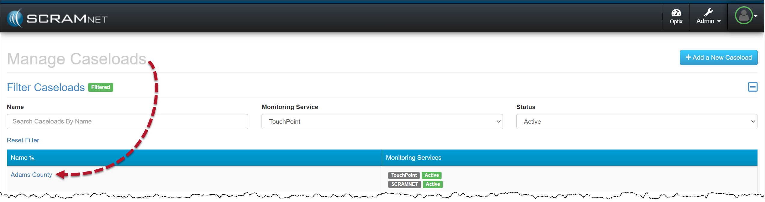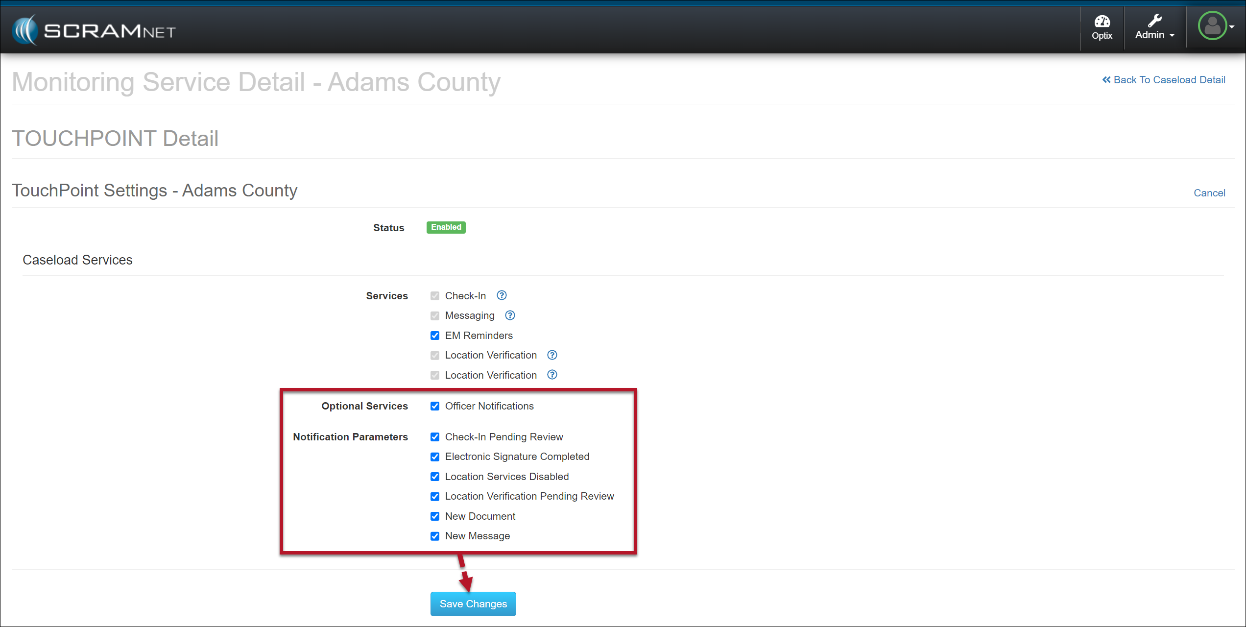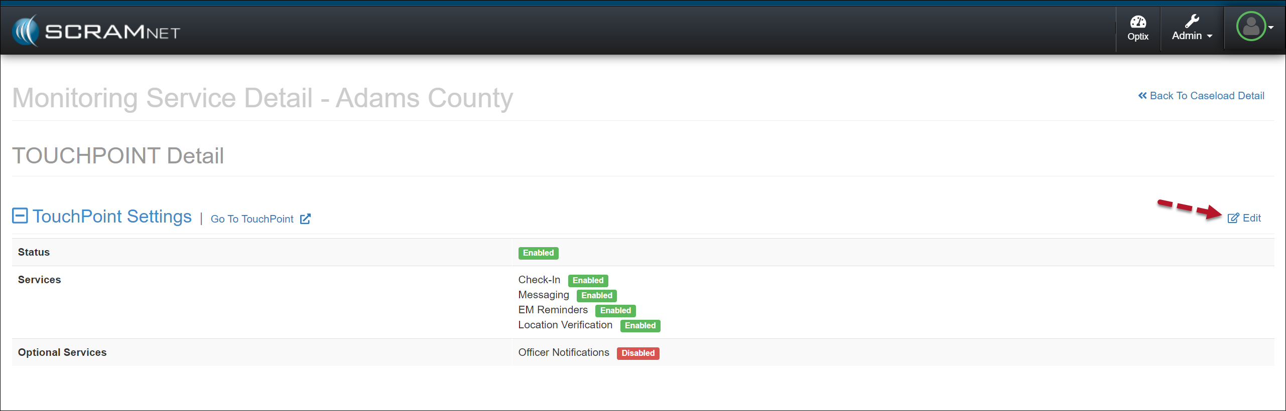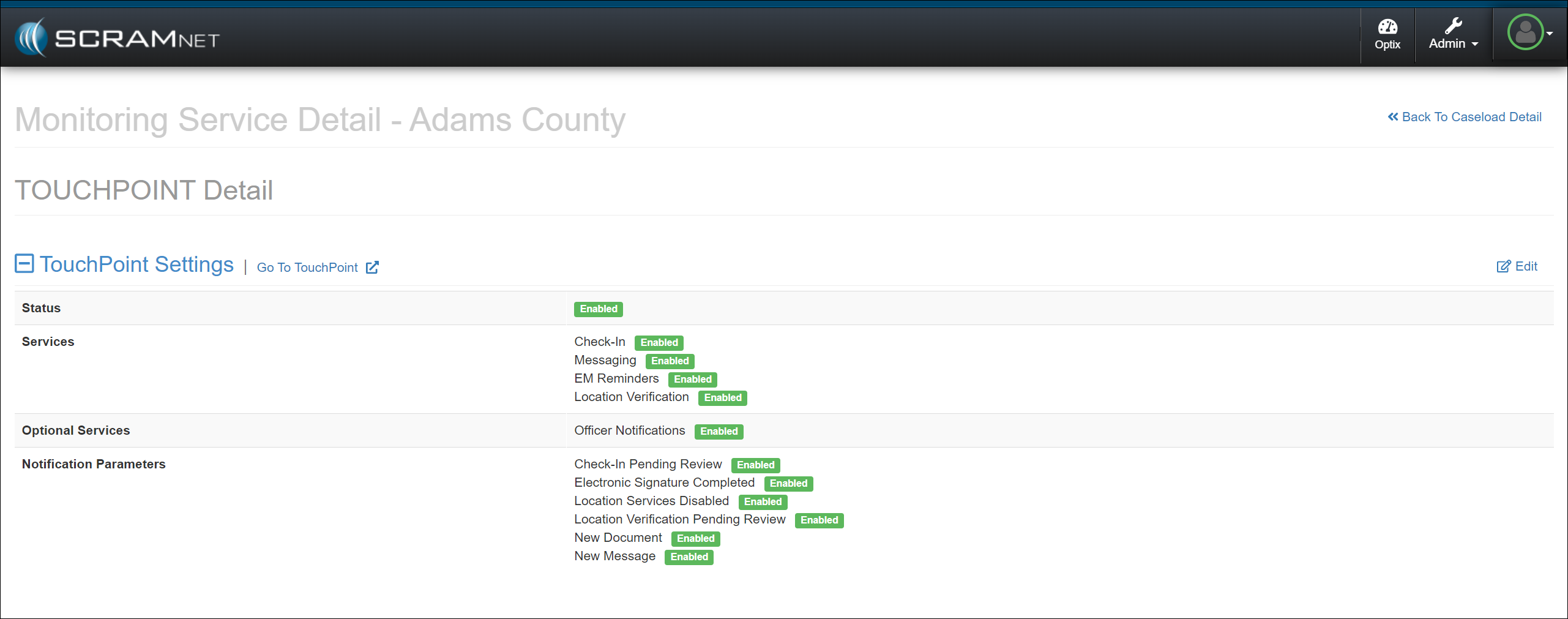 - Select the TouchPoint Caseload for which you wish to enable Officer Notifications.