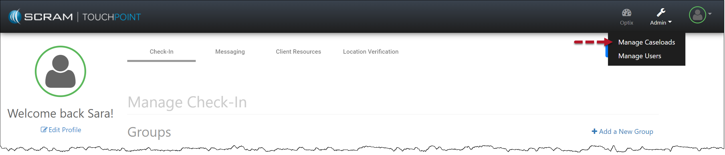 - Select the Admin button and then the Manage Caseloads option from the dropdown menu.